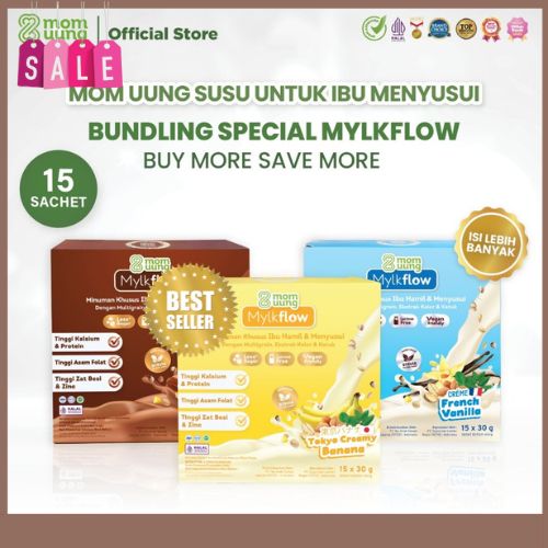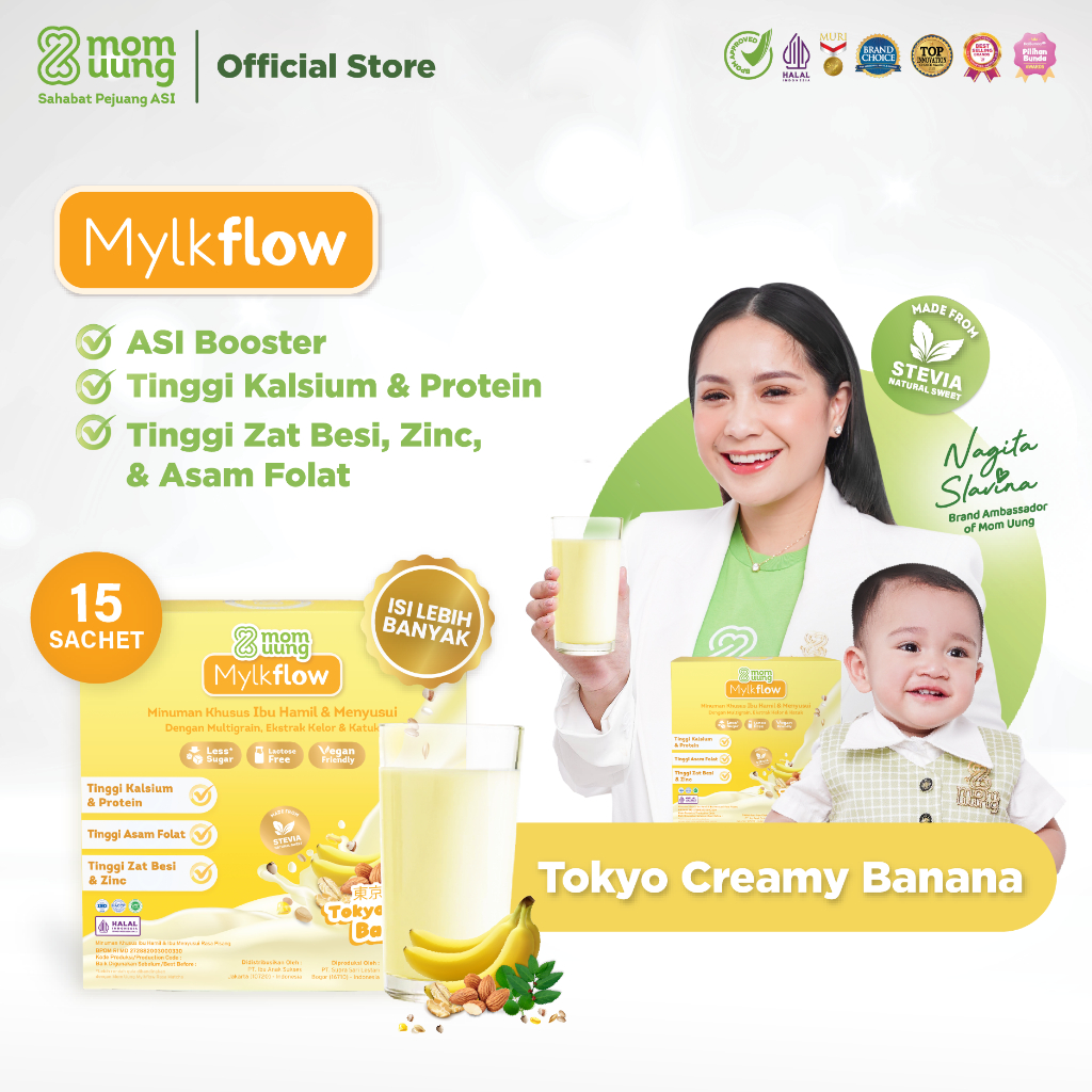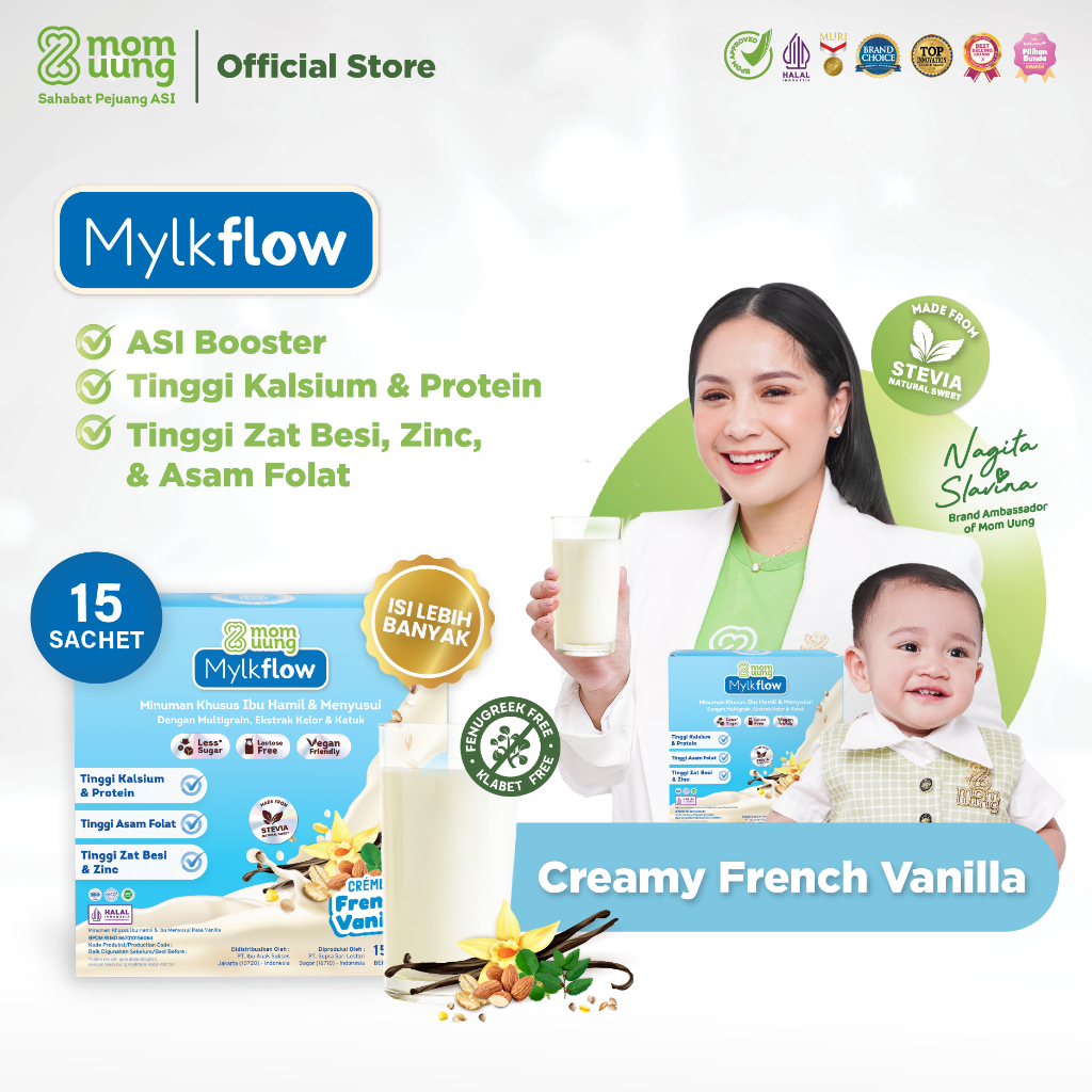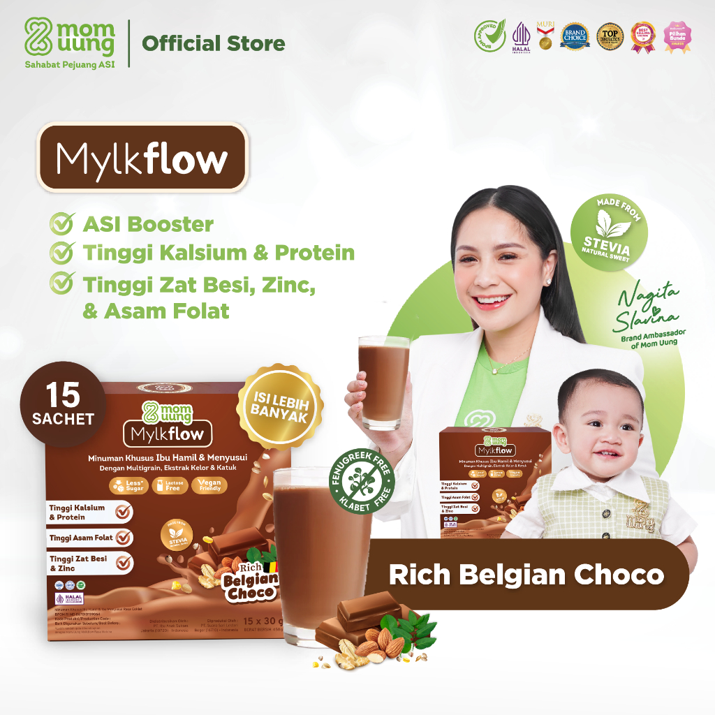 [ISI LEBIH BANYAK] Mom Uung NEW Susu Mylkflow (15 Sachet) Belgian Choco / French Vanilla / Tokyo Creamy Banana - ASI Boo