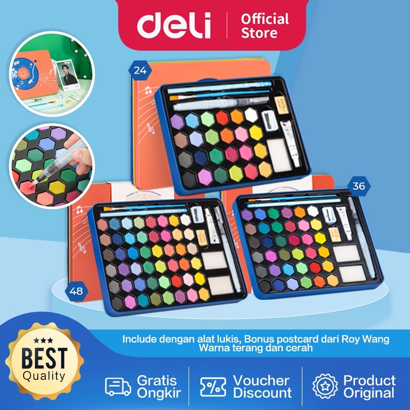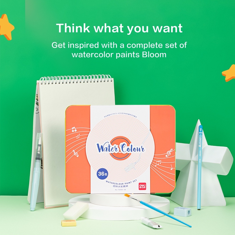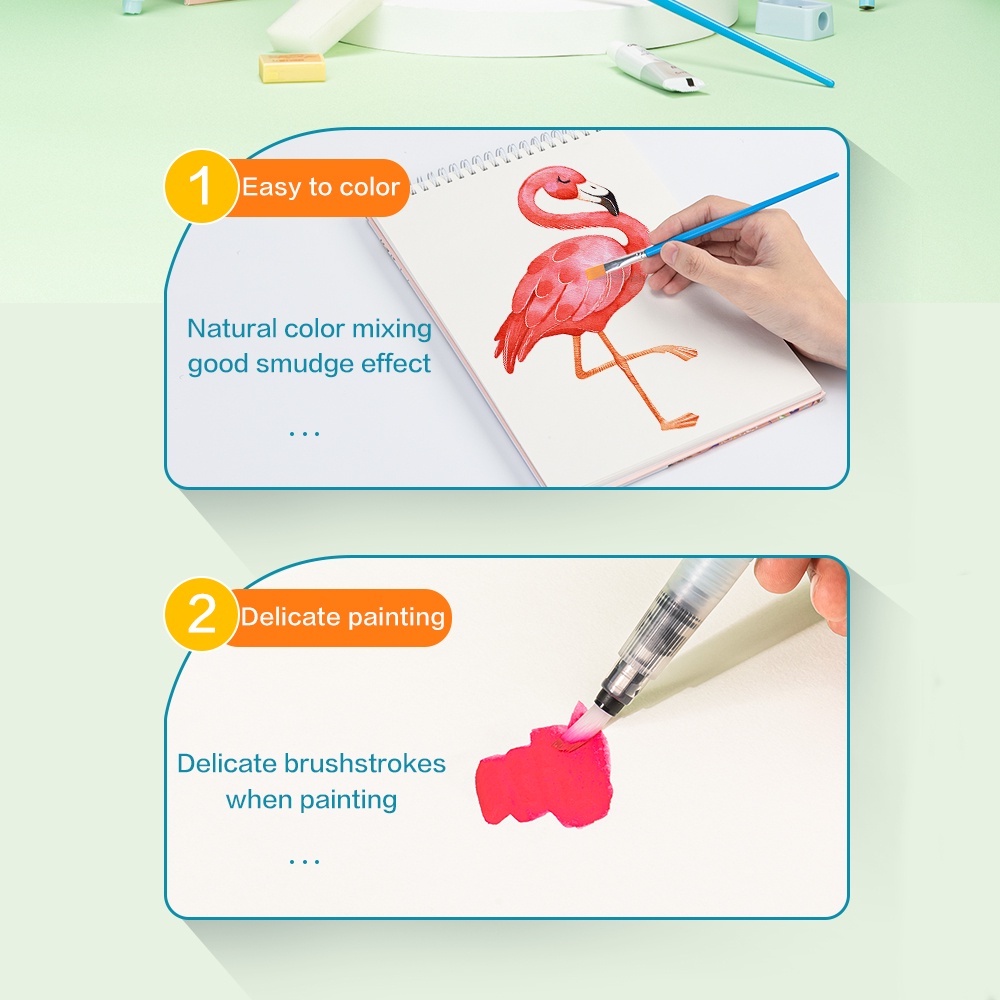 Cat Air Padat Deli Warna Terang / Solid Watercolor Paint dengan Kuas Air Otomatis - 73936-X