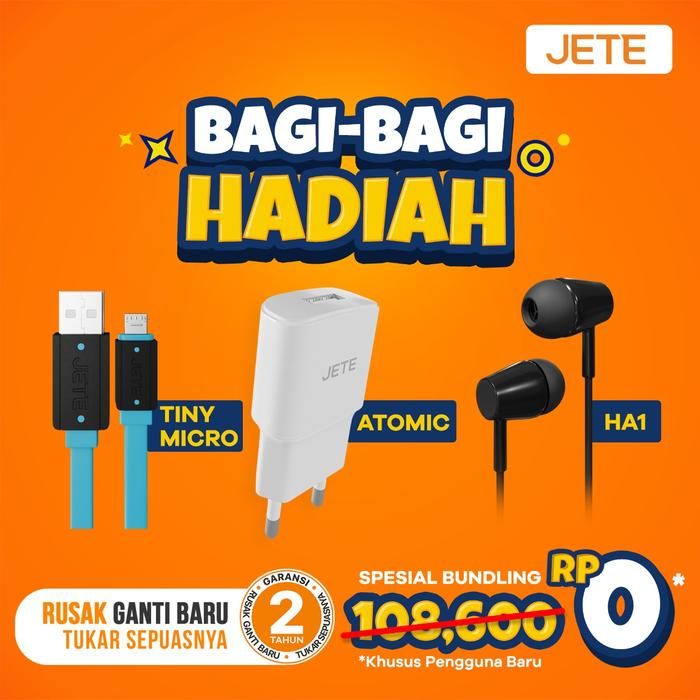 Paket Bundling Jete Charger Hp Atomic + Kabel Tiny Micro + Headset Ha1