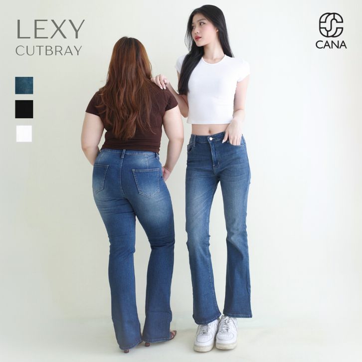 Canaku | Lexy Highwaist Cutbray Jeans | Stretch Trendyu Hitam Putih Celana Denim Wanita