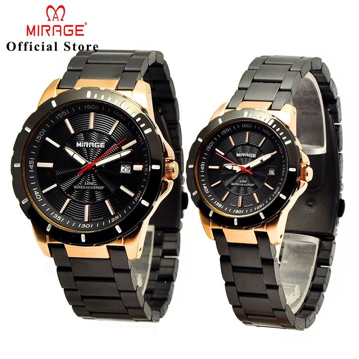 Mirage Watch Jam Tangan Couple Pasangan Analog Hitam Rosegold 8549 Anti Karat