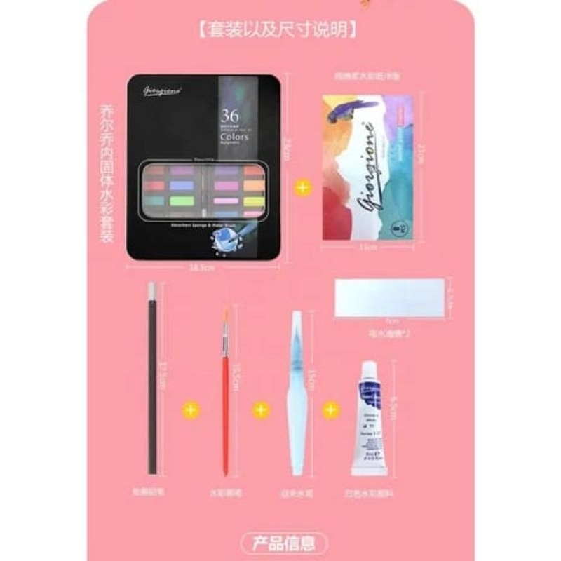 Giorgione Solid Watercolor Paint Set Cat Air Kemasan Kaleng 36 Warna Tin Case