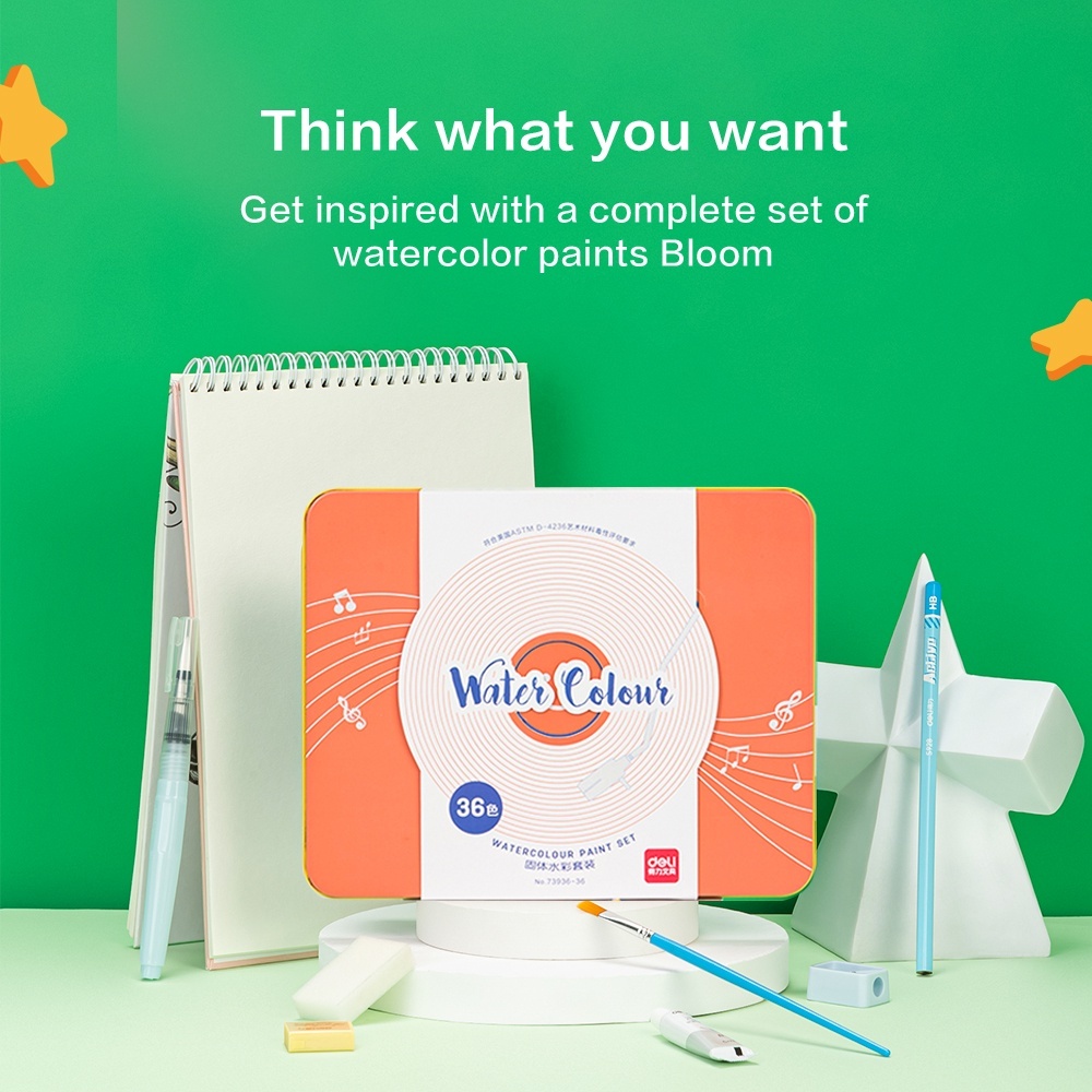 Deli Solid Watercolor Paint / Set Cat Air Padat Warna Terang Dengan Kuas Air Otomatis 73936-X