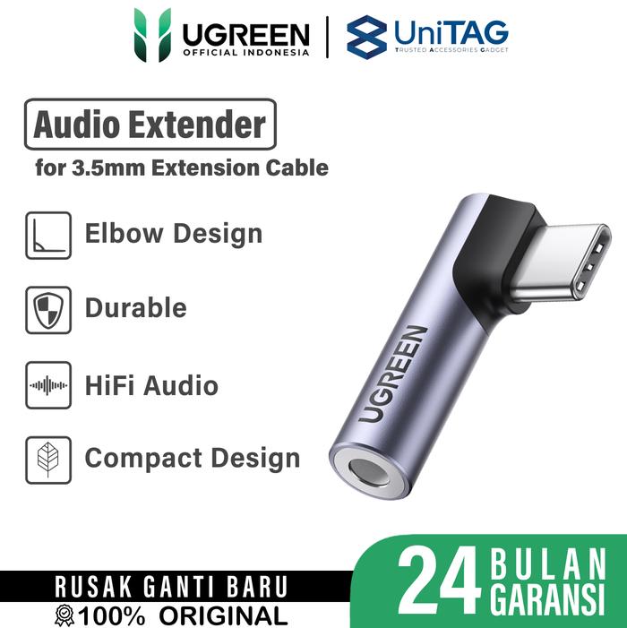UGREEN Kabel Audio Aux 3.5mm 90 Degree Male to Female Xiaomi op po Huawei Extender Microphone
