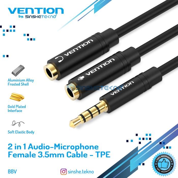 Vention BBV Kabel Aux Audio Splitter 3.5mm 4Pole Male to 2 Female