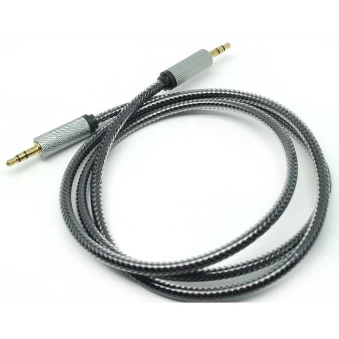 Metal AUX Cable Jack Kabel AUX Audio Konektor 3.5mm HiFi 1M Silver *