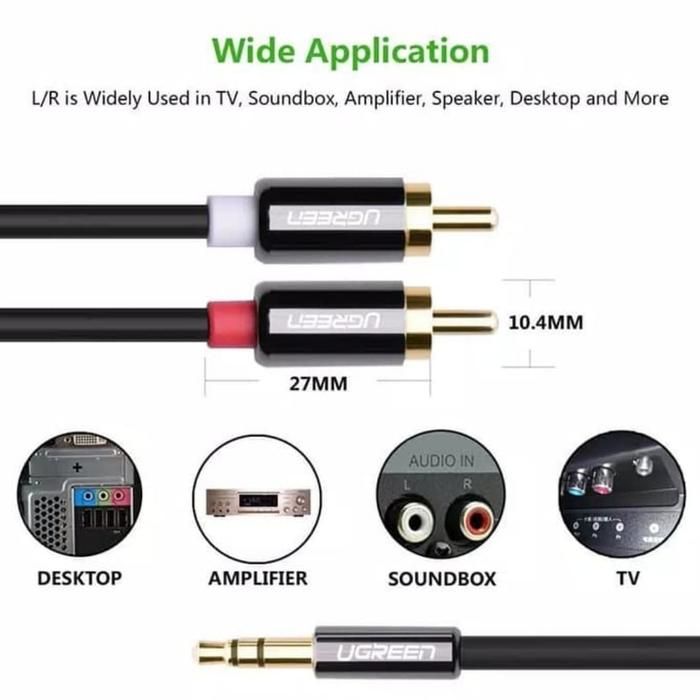 Ugreen Kabel Audio Jack 3.5mm to 2 RCA Kabel Audio RCA Splitter Y Hifi