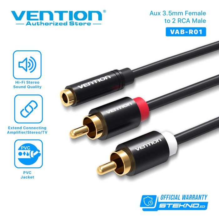 Vention R01 Kabel Aux 3.5mm Female To 2 RCA Male Stereo Gold Plated