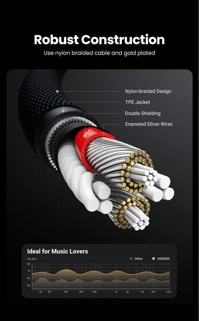 UGREEN Kabel Aux Audio Jack 3.5mm Male To Male TRS Hifi Stereo 50361