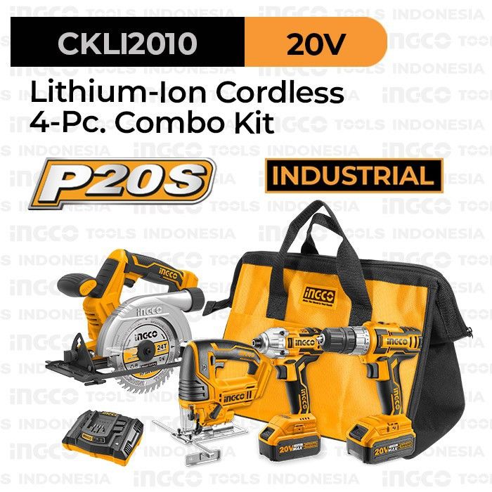 Combo Kit Cordless Drill Impact Driver Brushless Jig Circular Saw INGCO CKLI2010 P20S