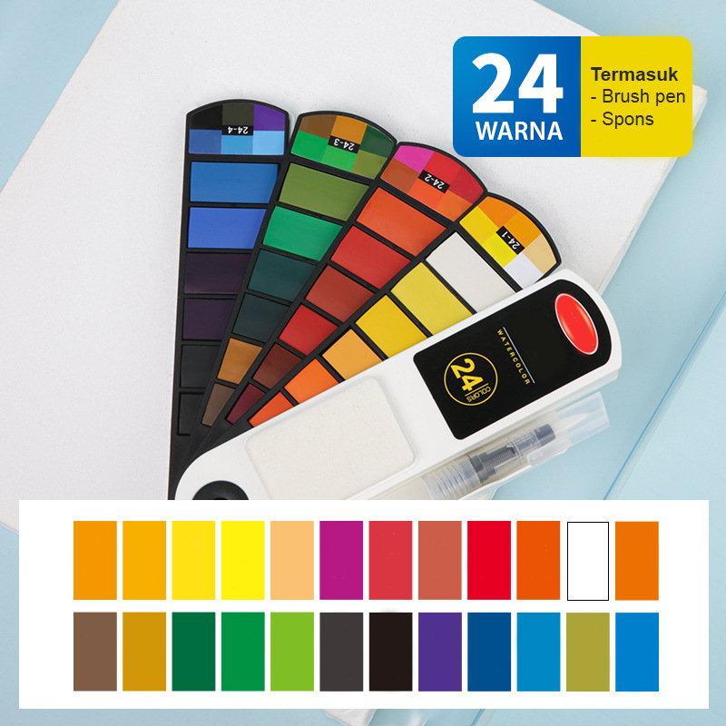 GRASP Set Cat Air Palet Kipas Watercolor Solid Set 18/24/36 Warna Dengan Kuas Mudah Dicampur Free Brush Pen CPG003