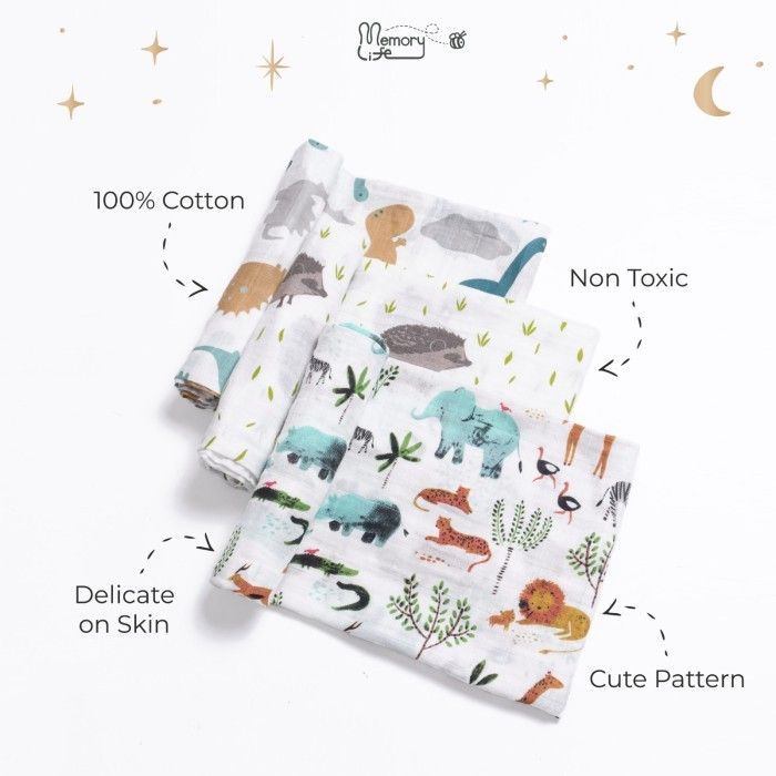 MemoryLife Essentials - Premium Baby Muslin Blankets Swaddle Bedong