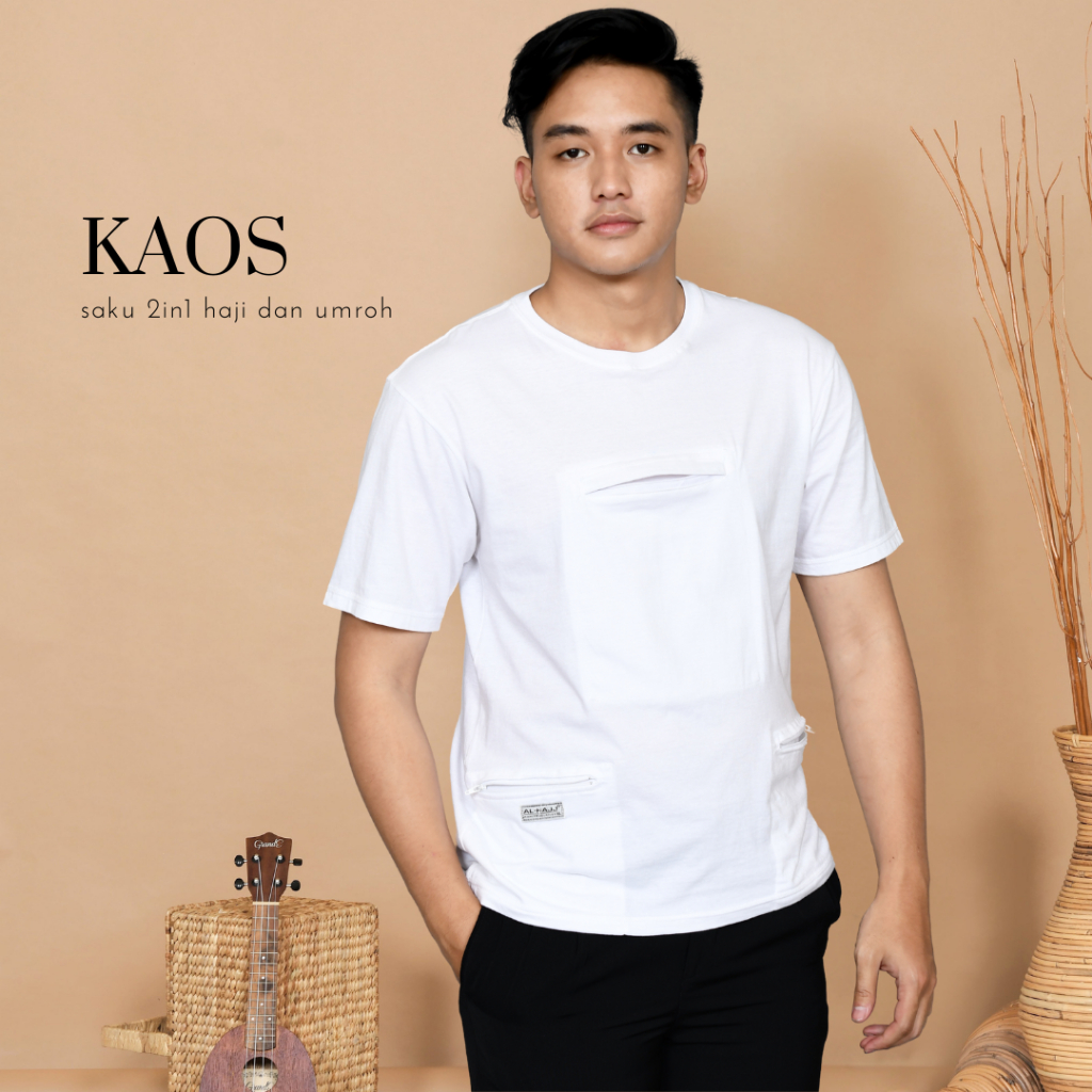 Kaos Pria Haji Premium Saku 3 Kaos Oblong Perlengkapan Haji dan Umroh 3in1 Lengan Pendek Adem AlHajj