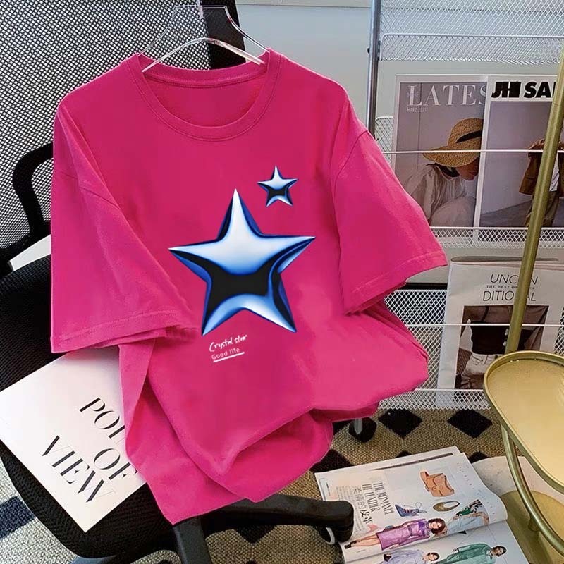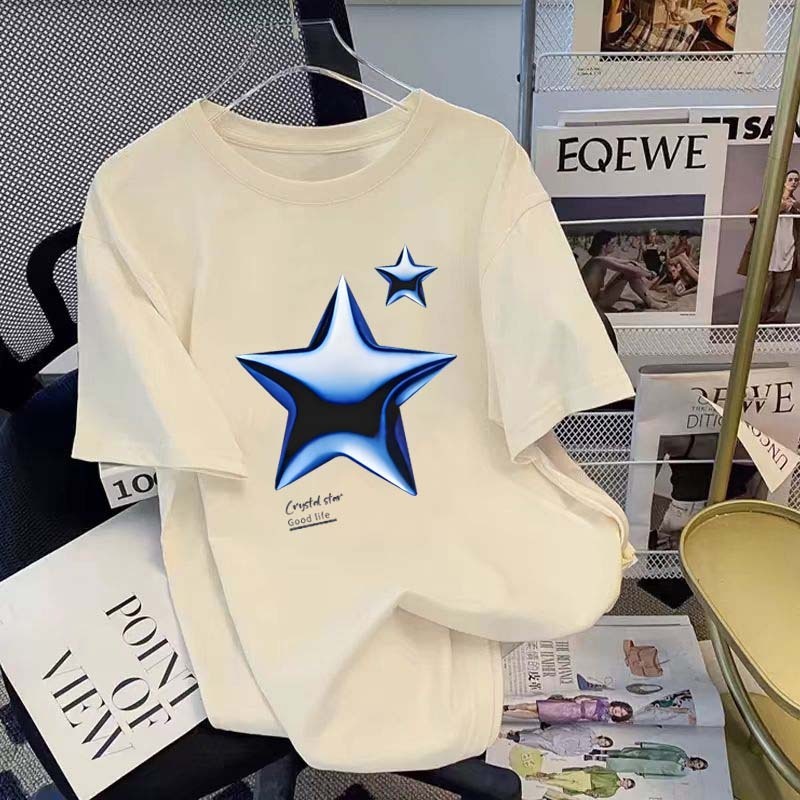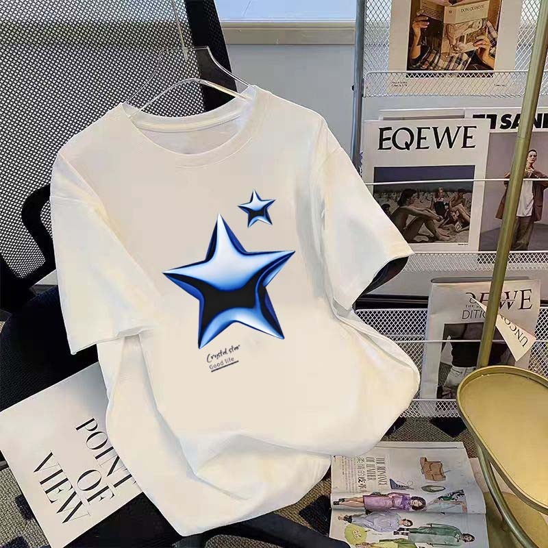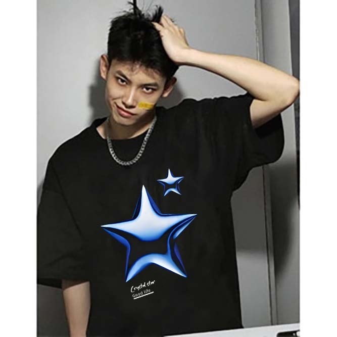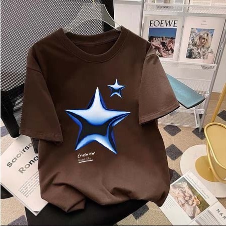 Bintang tiga dimensi biru jalanan yang trendi Kaos Lengan Pendek Pria|Kaos Pria Terbaru 2025|Kaos Cotton Combed 30s|Kaos