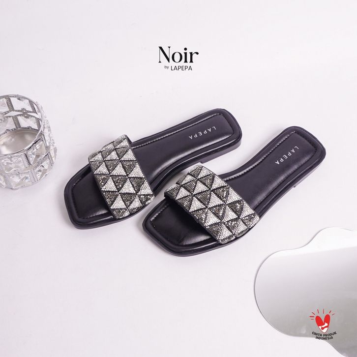 LAPEPA SHOP - NOIR Sandal Flat Slop Wanita