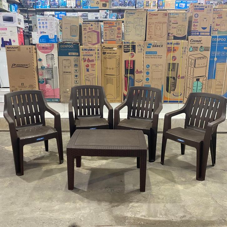 1 Set 4 Kursi Teras santai anyaman plastik Olymplast OL 507 Meja OCT-R olymplast Meja OST-R Olymplast Kursi Set Taman
