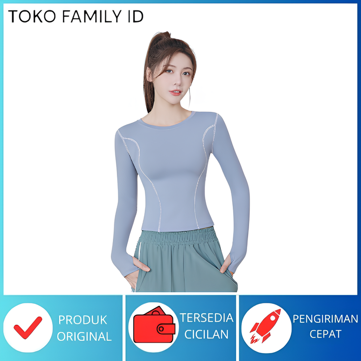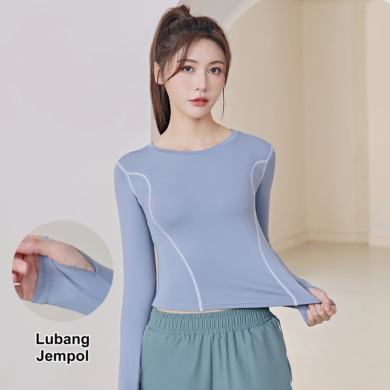 Baju Olahraga Wanita Lengan Panjang Model Thumb Hole YF077