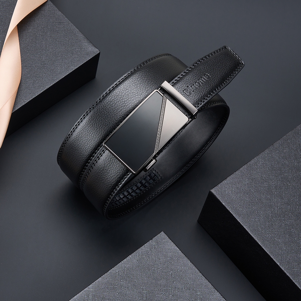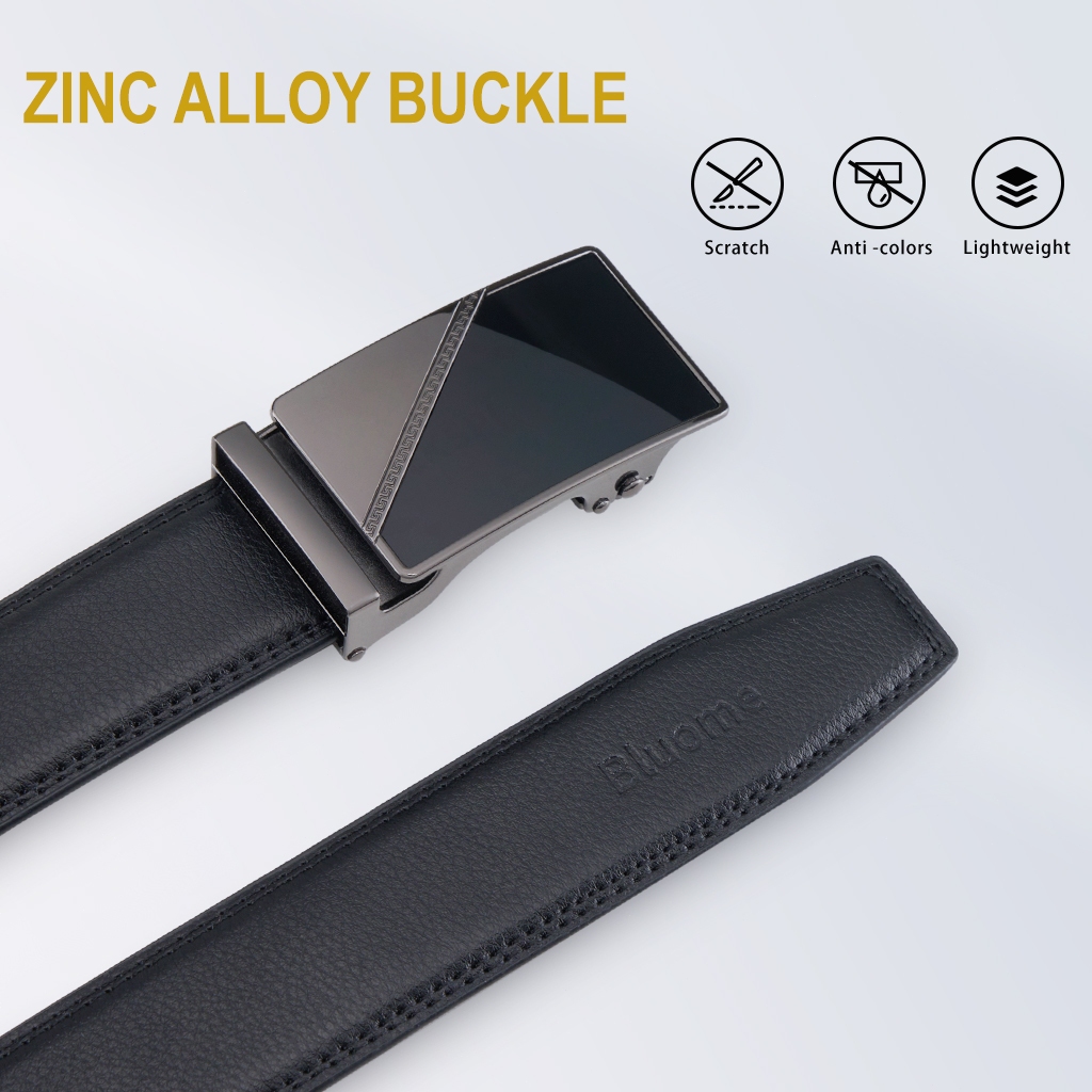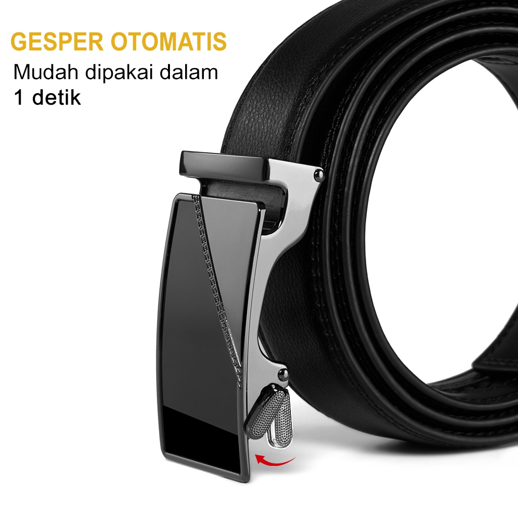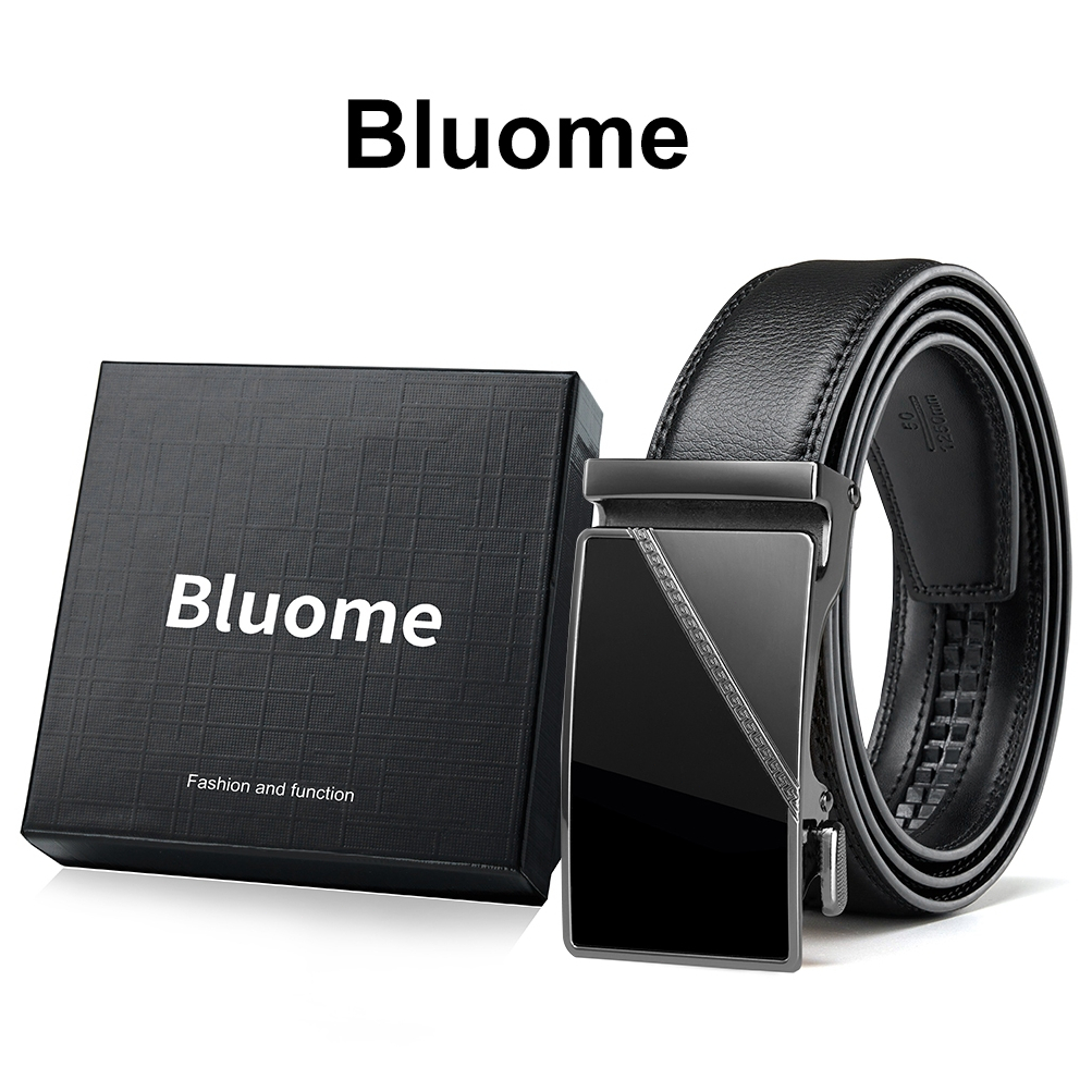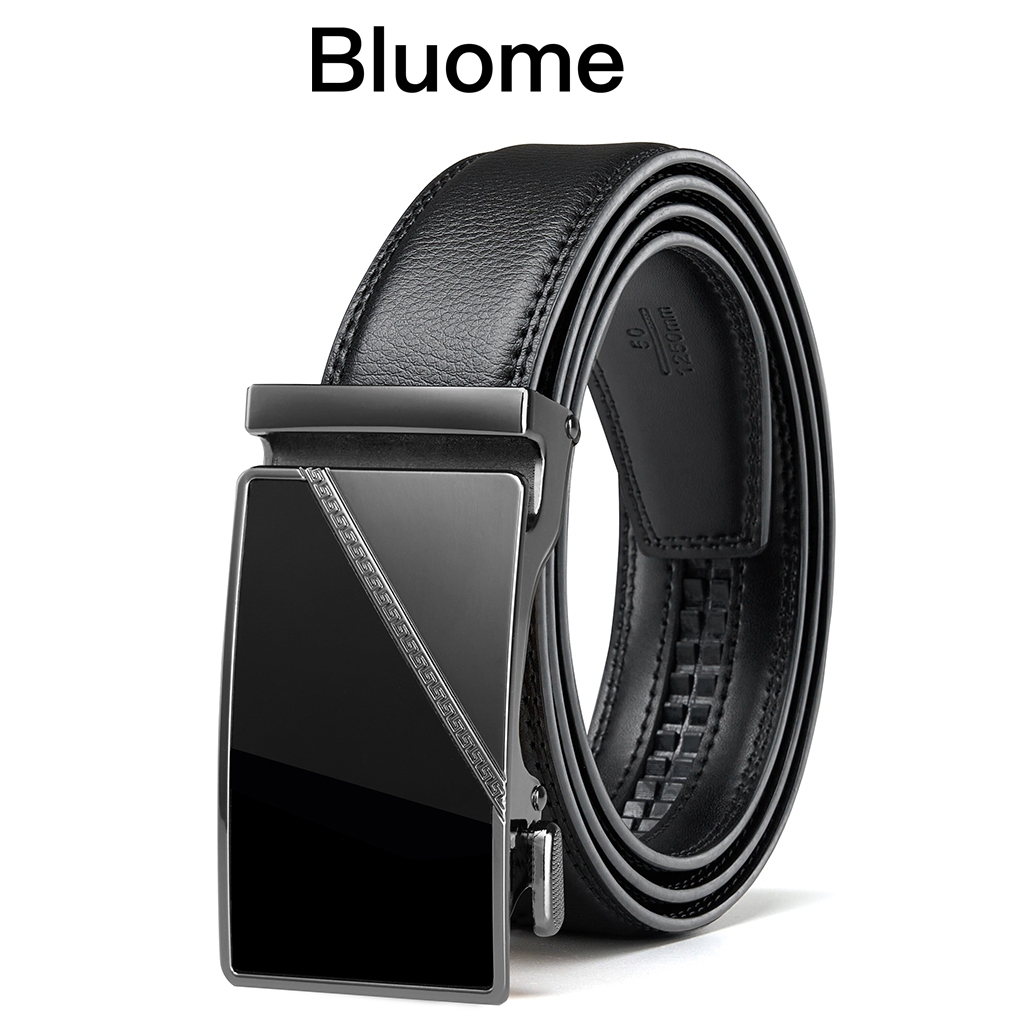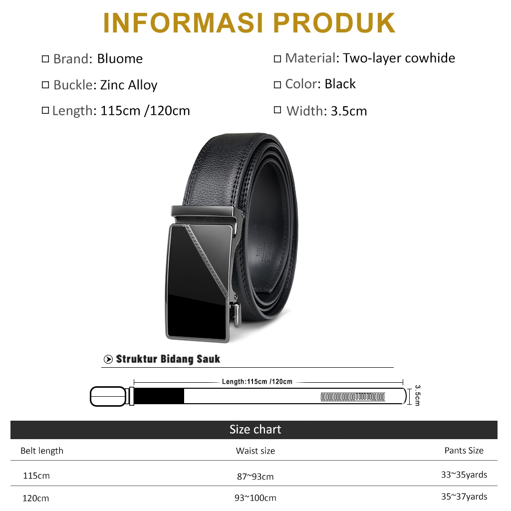 Bluome Sabuk Ikat Pinggang Pria Kulit Sapi Asli Gesper Model Rel Otomatis Belt Cowok Formal Original