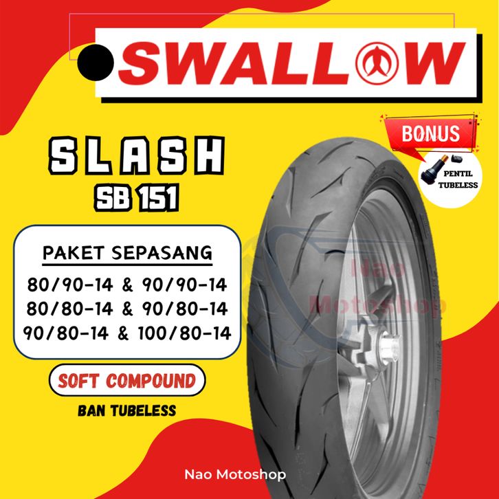 TERLARIS!! [ PAKET SEPASANG ] BAN SWALLOW SLASH SB151 SOFT COMPOUND TUBELESS RING 14 80/90 90/90 90/80 100/80