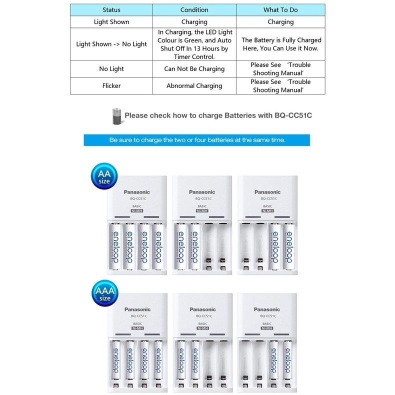 In Stock✨Pengisi Daya Asli Panasonic Eneloop BQ-CC51 Dengan Baterai Isi Ulang AA/AAA 1.2V NiMH 1900mAh 800mAh Paket 4 (P