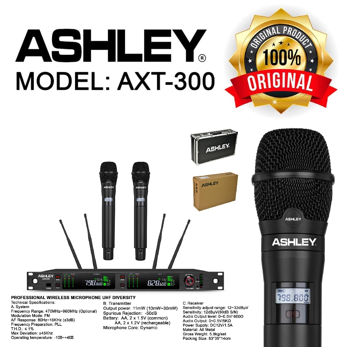 Ashley axt 300 mic profesional wireless ashley axt300 / axt 300 garansi resmi 1 tahun original