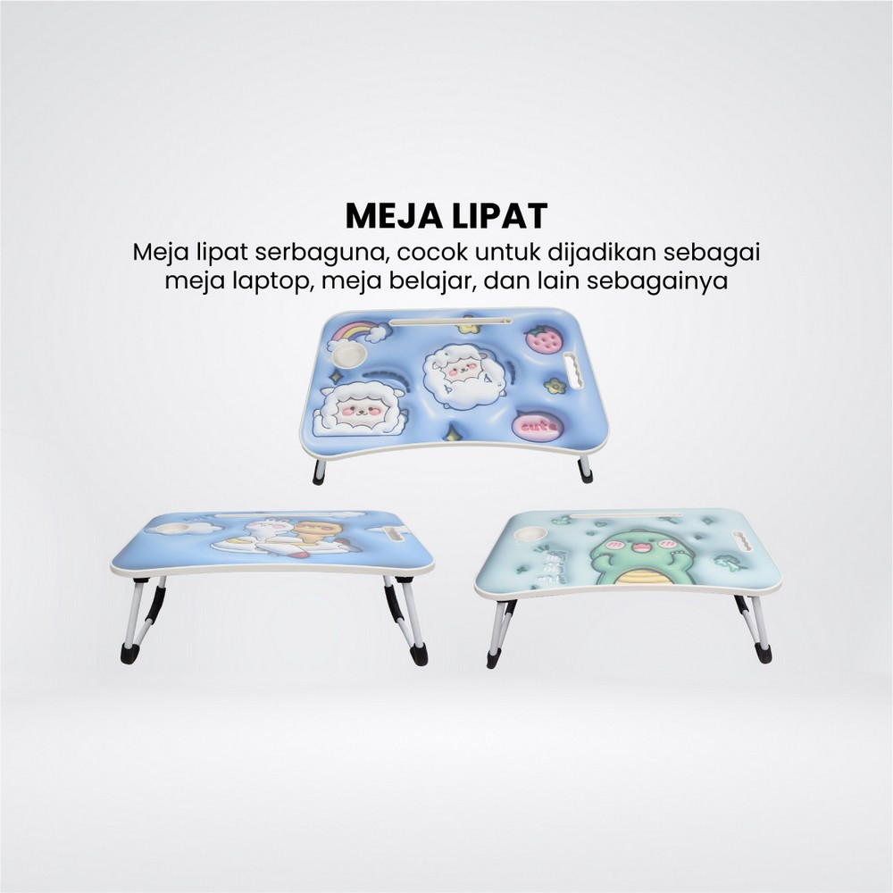Meja Laptop Lipat Karakter Gambar 3D Portable Folding Table / Meja Lipat Korean Style Meja Belajar Anak Motif 3D Anti Ai