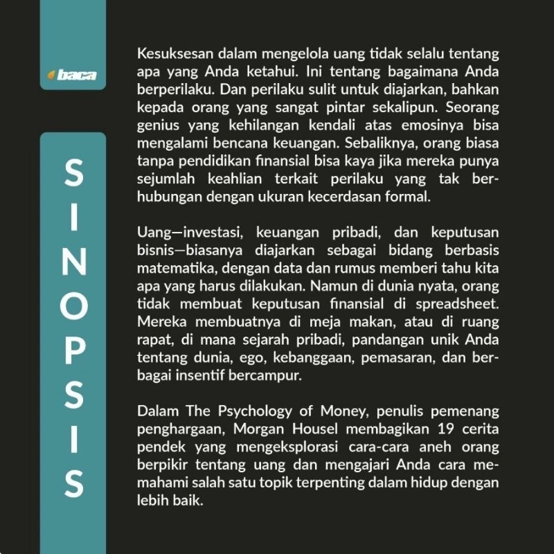 Buku The Psychology Of Money Pelajaran Abadi Mengenai Kekayaan MORGAN HOUSEL