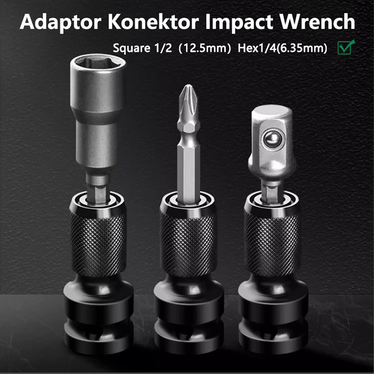 Isku Konektor Mata Obeng Adapter Impact Wrench 1/2 Inch Ke 1/4 Inch Magnetic Telescopic