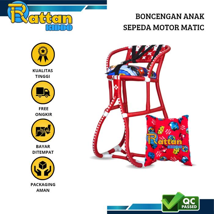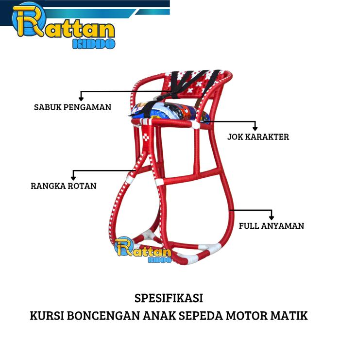 Kursi Boncengan Motor MATIK untuk Anak Full Anyaman Jok Karakter GRATIS BANTAL STANG