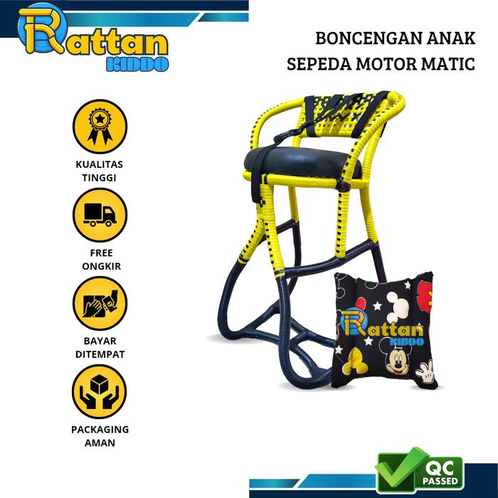 Kursi Boncengan Motor MATIK untuk Anak Full Anyaman Kombinasi Jok Kulit GRATIS BANTAL STANG