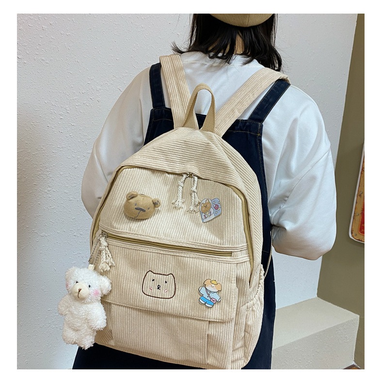 KINOKIMI - RANSEL WANITA CANTIK - RANSEL SEKOLAH - RANSEL CORDUROY - BACKPACK ANAK - TAS CEWEK