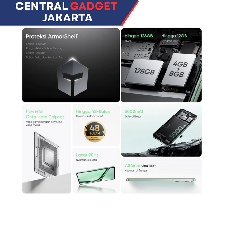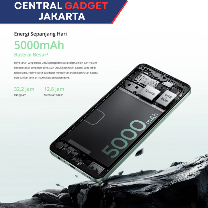 HP Realme Note 60x 4GB+8GB*64GB - Rangka Metal Tahan Banting - Tahan Debu dan Percikan Air | Garansi Resmi Realme