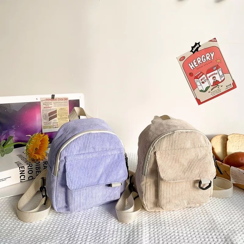 BACKPACK MINI CORDUROY TAS RANSEL KEKINIAN LUCU KECIL BAG VINTAGE WANITA KOREAN AESTHETIC STYLE