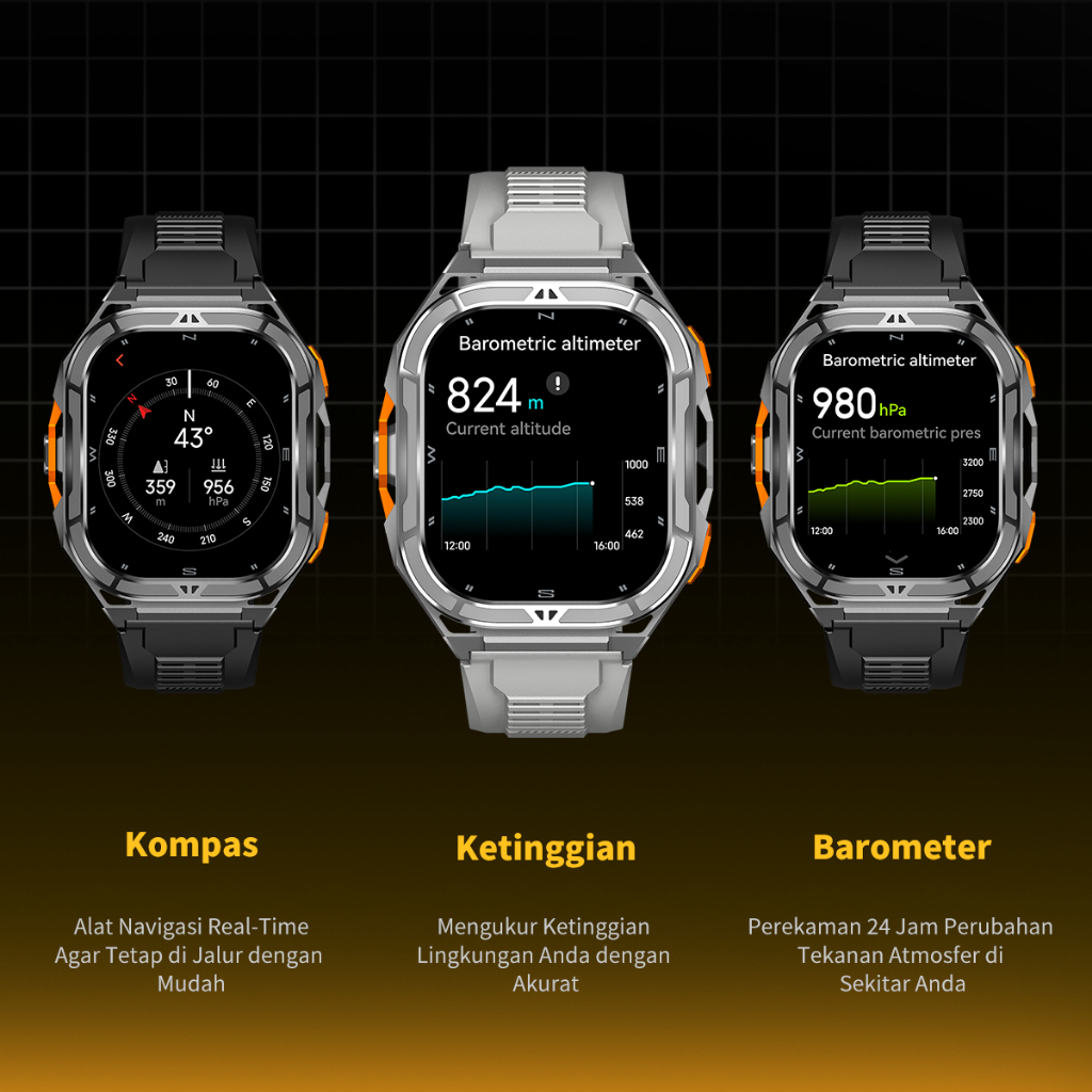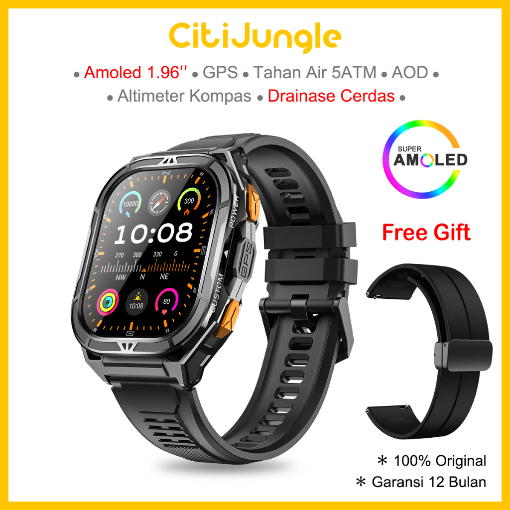 [Garansi 12 Bulan] Citijungle GPS Smartwatch Scout1 Layar AMOLED 1.96'' Tahan Air 5ATM Drainase Cerdas Altimeter Kompas