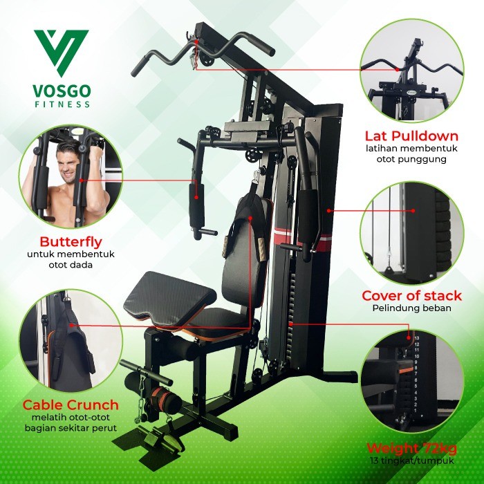 ALAT FINESS HOME GYM VOSGO BROOKLYN PRO 1 SISI BERAT BEBAN 72KG