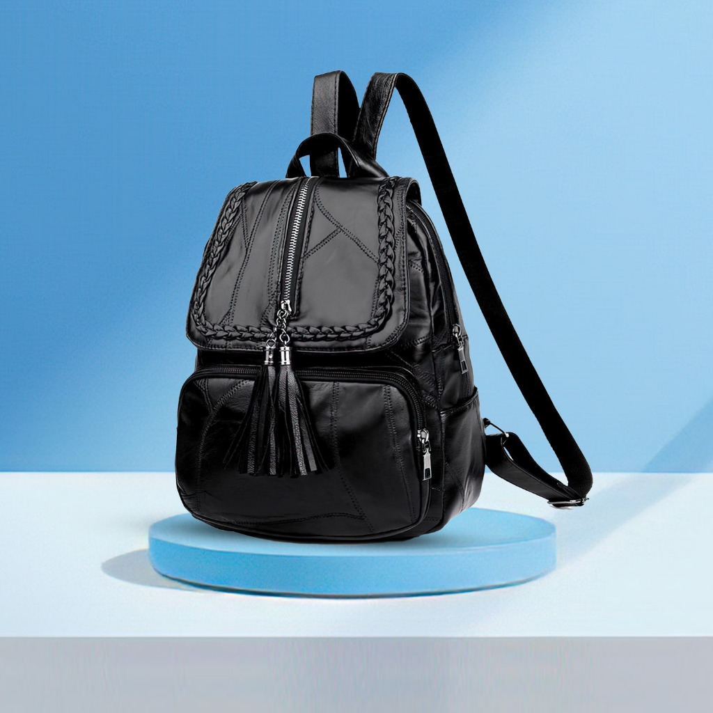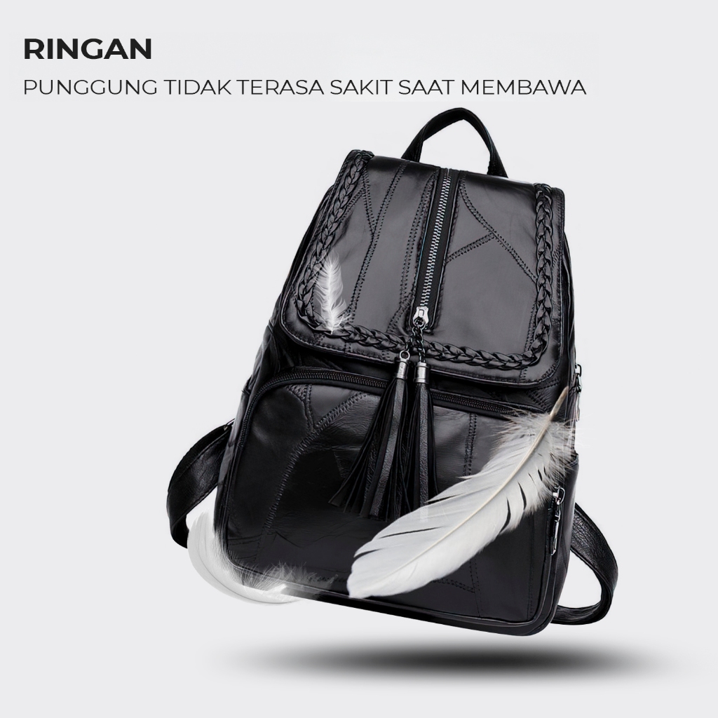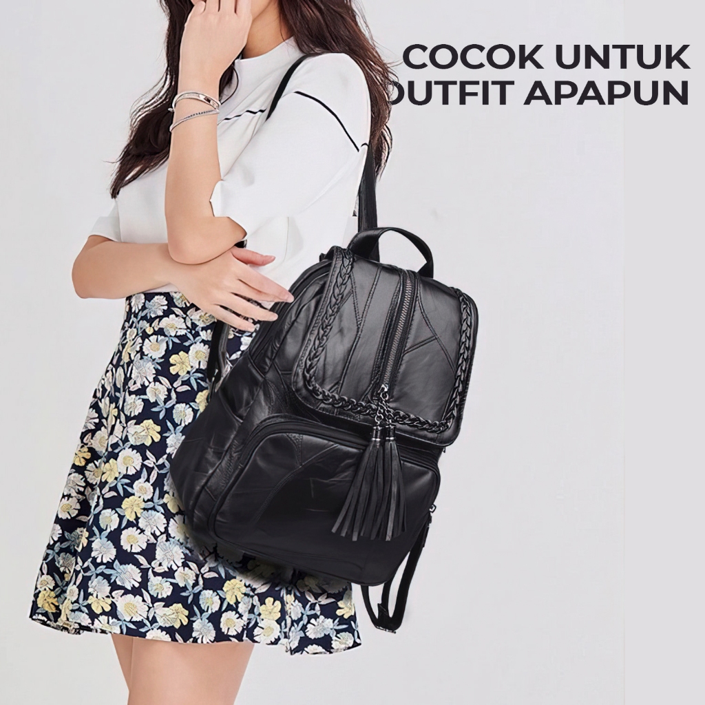 TAS RANSEL WANITA KULIT PREMIUM HITAM WATERPROOF TAS WANITA POLOS MODIS FASHION TRENDY BACK PACK KULIT SINTETIS - NS 6