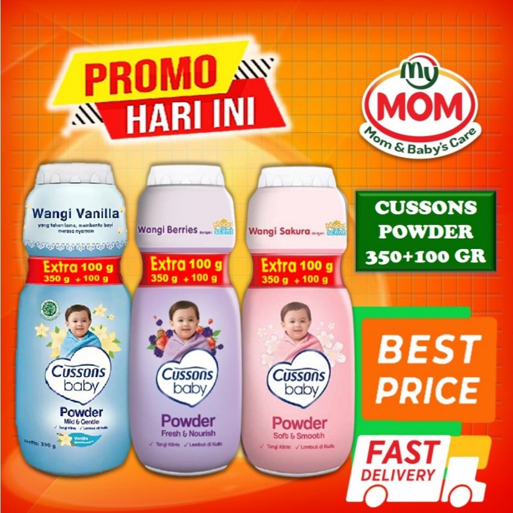 CUSSONS Baby Powder 350gr + 100gr - Cusson Bedak Bayi - Powder Anak - Bedak Melembabkan Kulit -MyMom