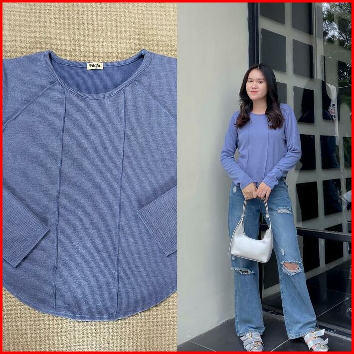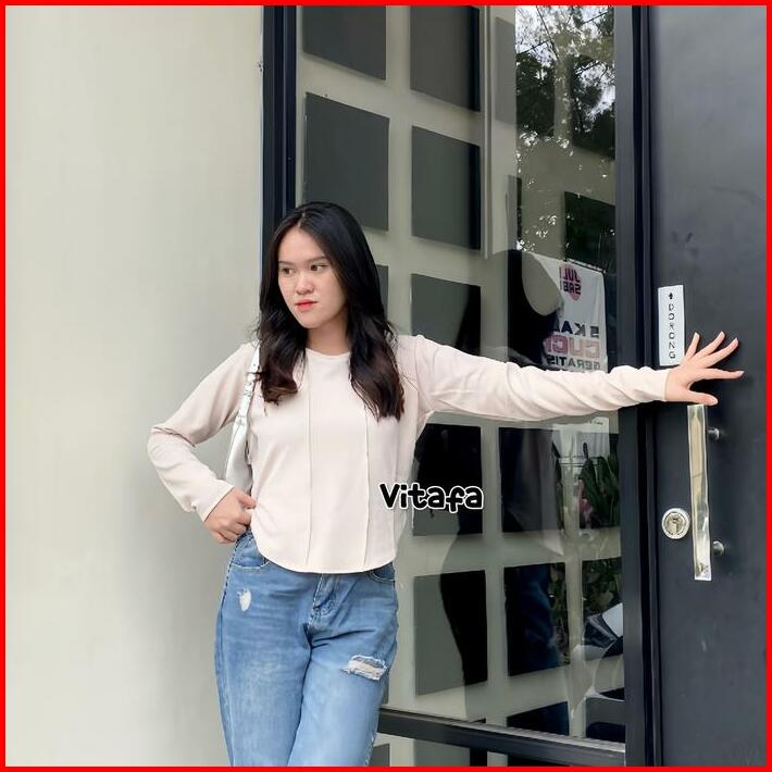 Edith Top Blouse Cotton Knit Rib Lengan Panjang Byvitafa