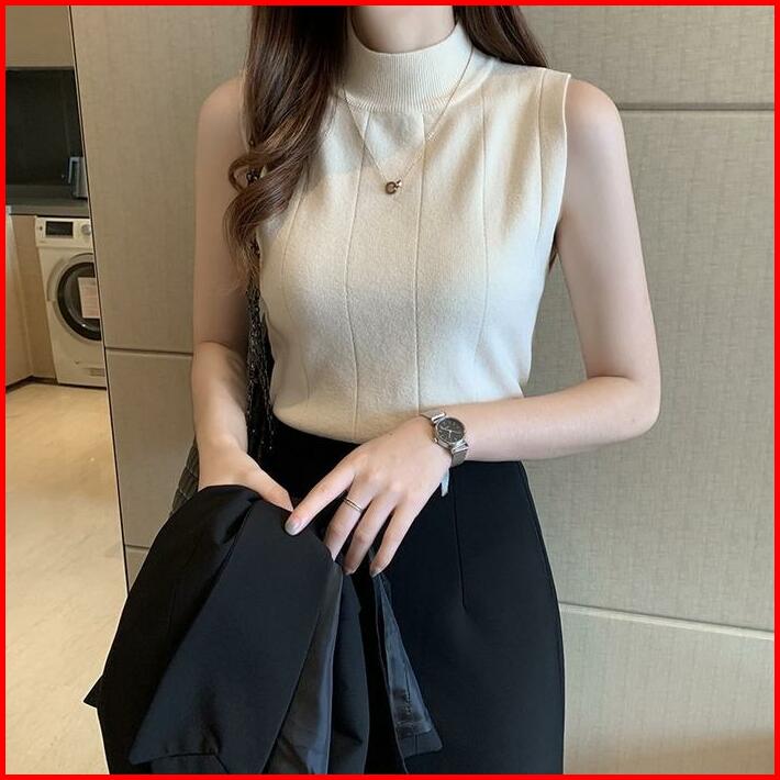 A685 Sleeveless Knit Top Turtle Neck Tanktop Inner Korean Style Fashion Wanita