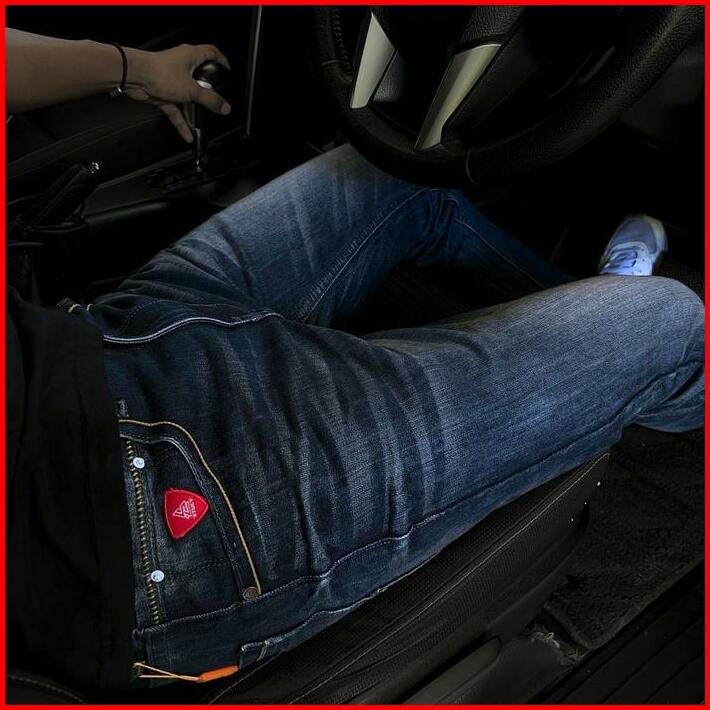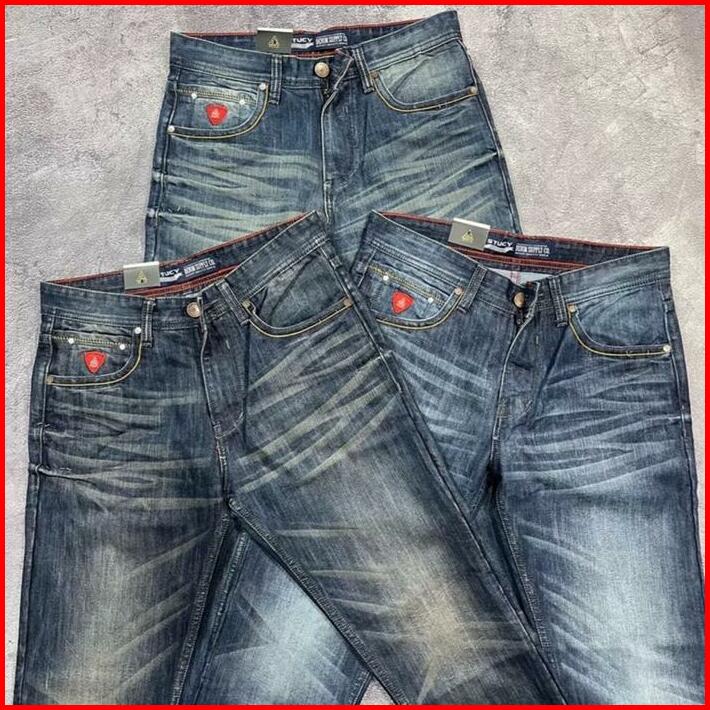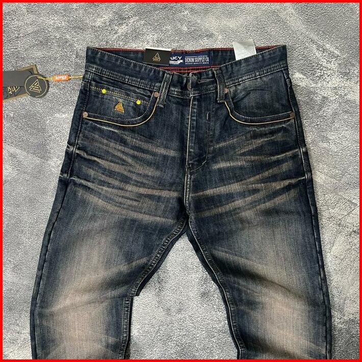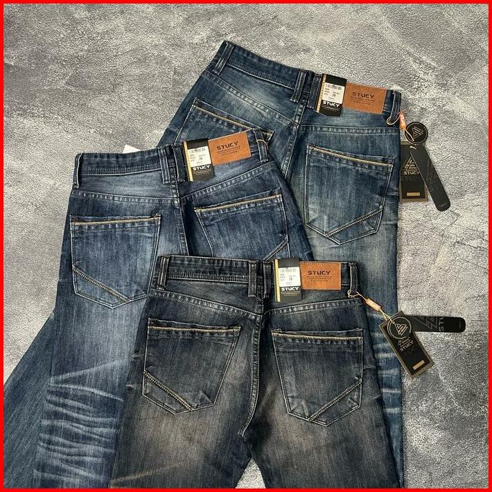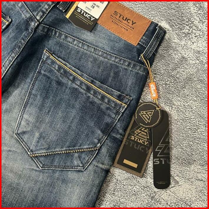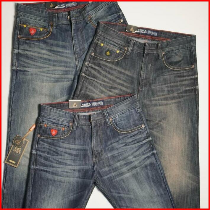 Stucy Celana Fading Jeans With Knit Selvedge Accent Straight Slim Non-stretch