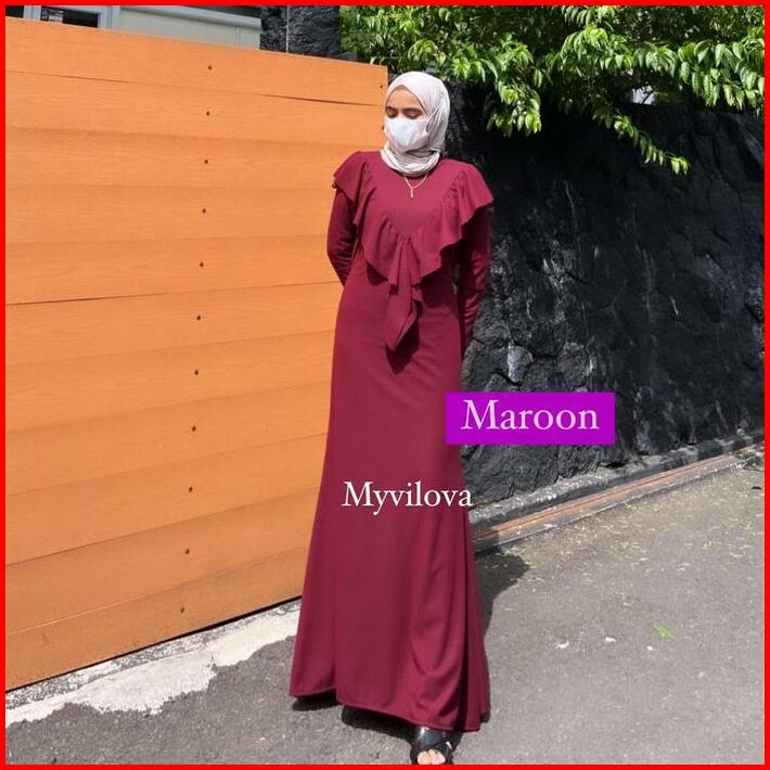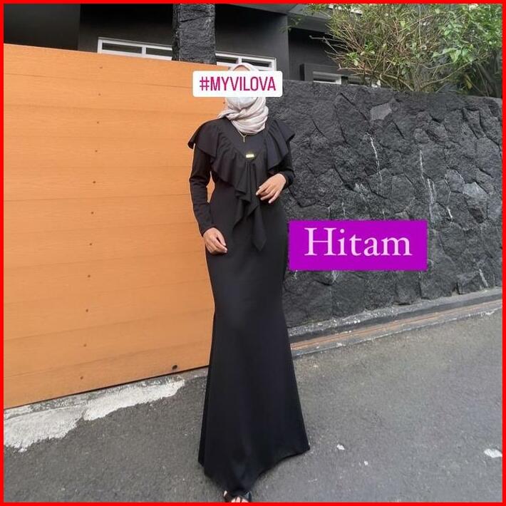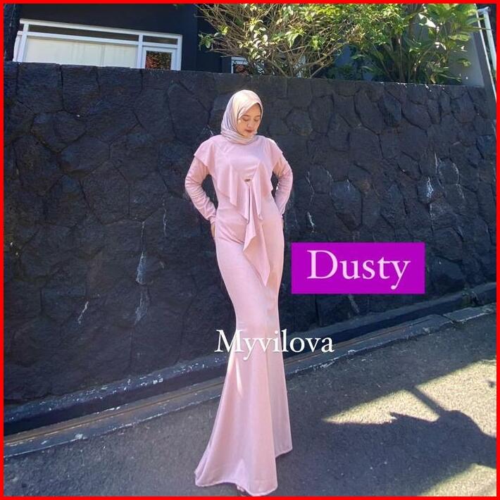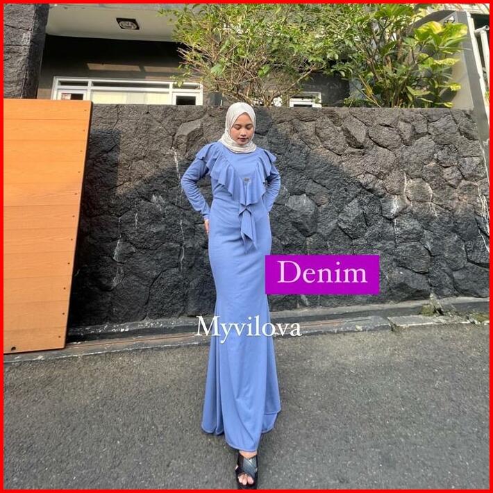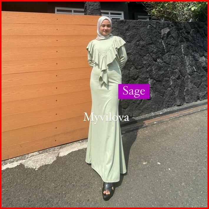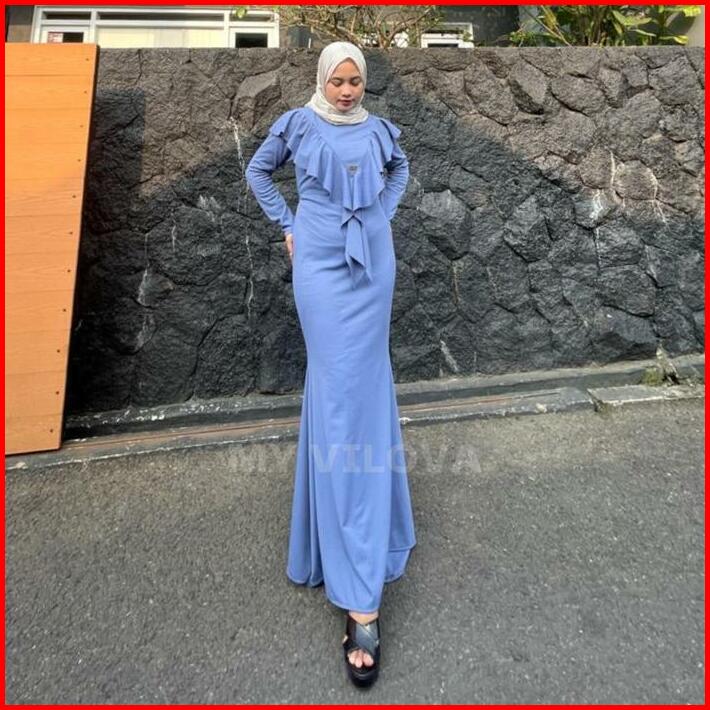 My Vilova Nagita Dress Mermaid Knit Jaguard Ruffle Depan Fashion Muslim Terbaru Gamis Viral Kondangan Dress Knit Duyung