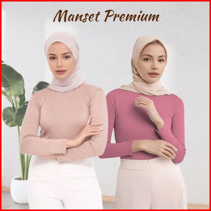 Khatoon Atasan Manset Wanita Premium Licin Inner Mangset Badan Lengan Panjang Kaos Hijab Dingin Polos