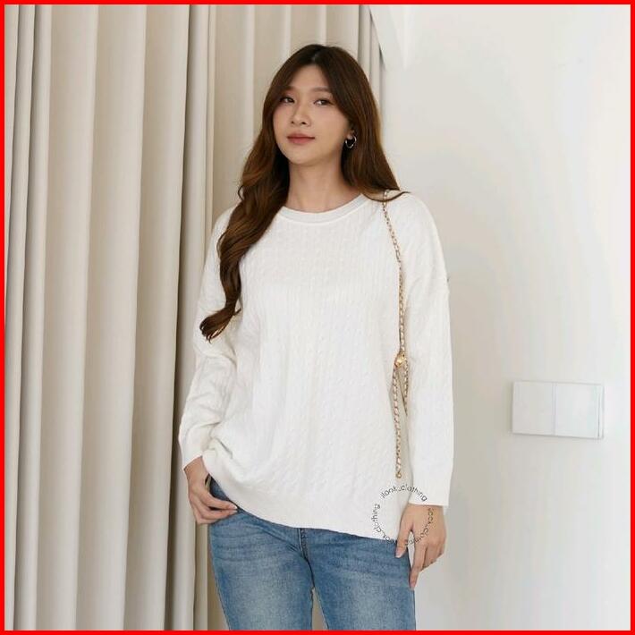 Malva Oversize Knit Tops Baju Rajut Katun Wanita Halus Adem Tangan Panjang Atasan Rajut