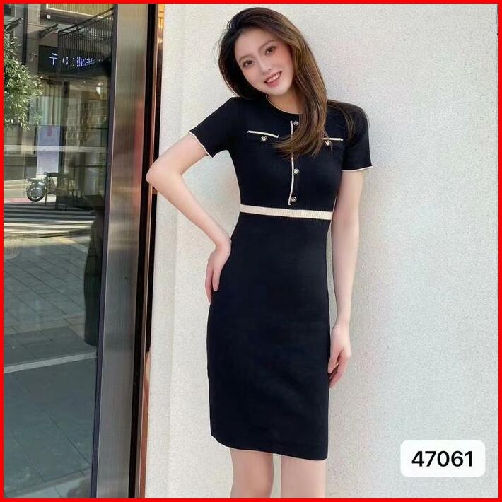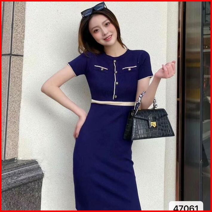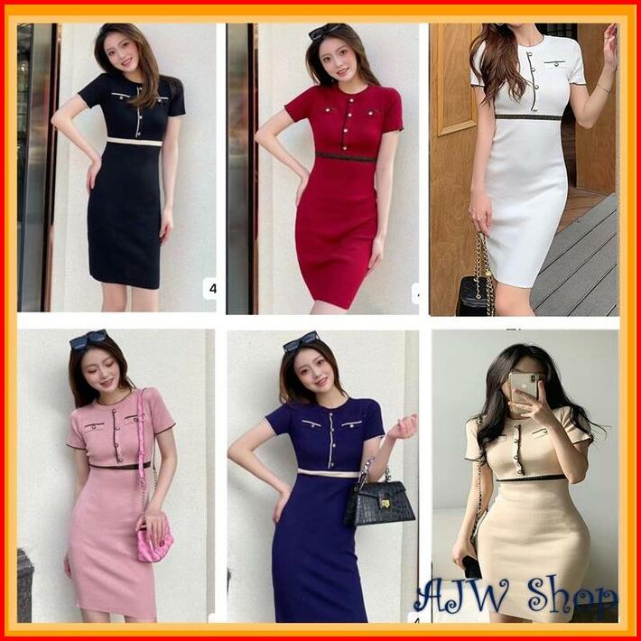 Ajw Sbg Dress Wanita Casual Rajut Lengan Pendek Mini Dress Elegan Lengan Pendek Drees Simple Elegan Casual Knit Premium