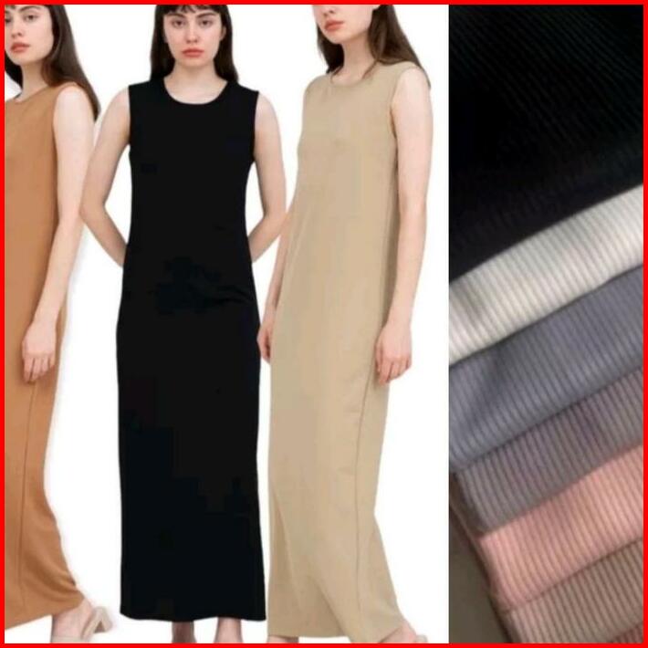 Alya Inner Dress Knit Inner Span Dress Dalaman Polos Tanpa Lengan