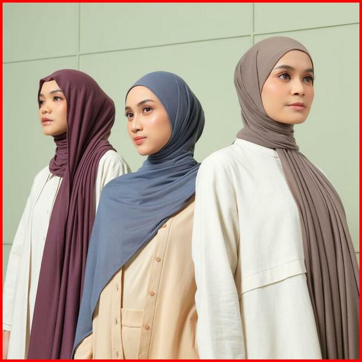 Dauky Kerudung Jilbab Panjang Selendang Pashmina Jersey Knit Wanita Muslim