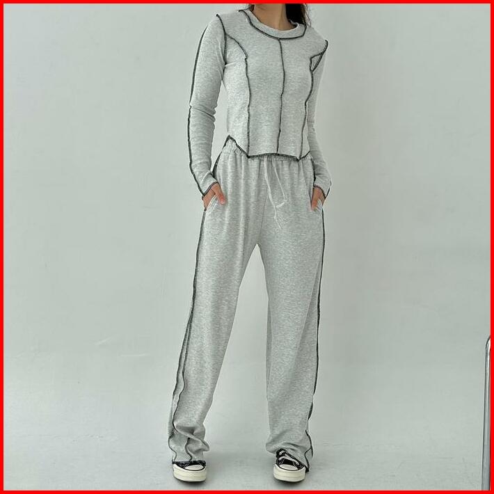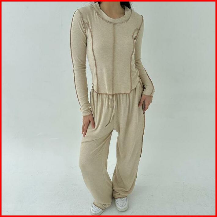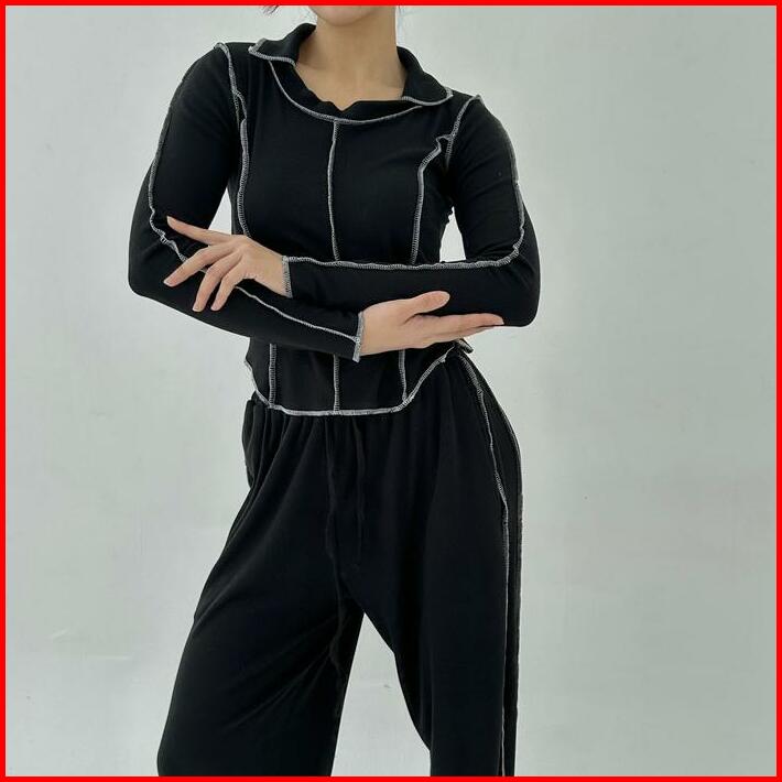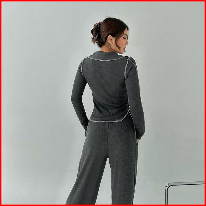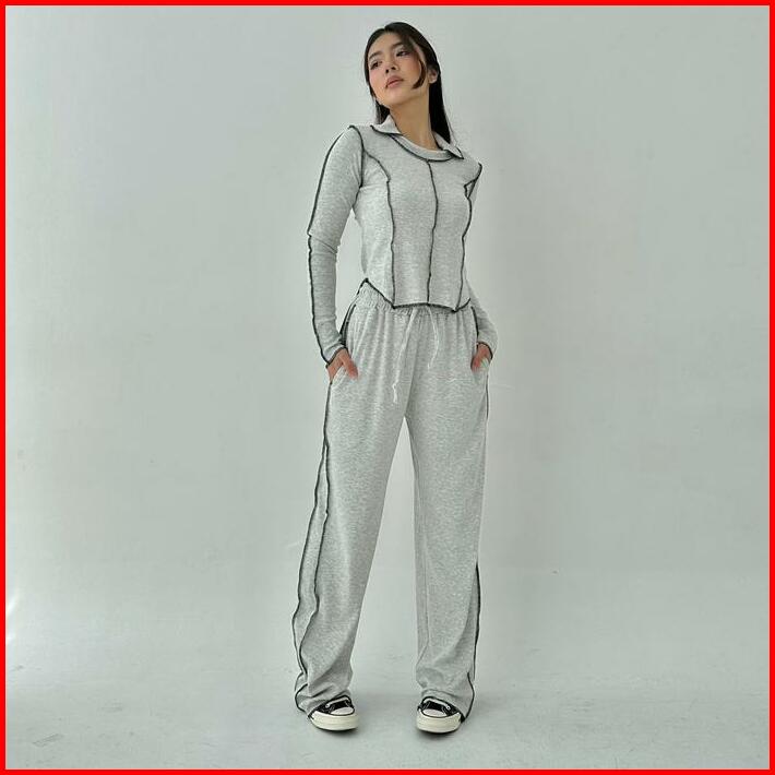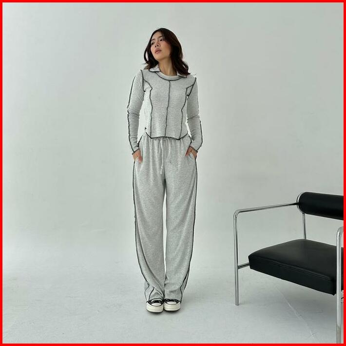 Jupiter Set Setelan Wanita Ribbed Knit Set Lengan Panjang Celana Panjang Highwaist Highwaisted Pants