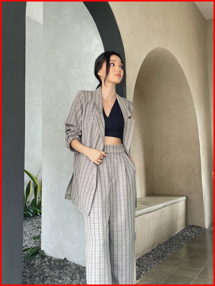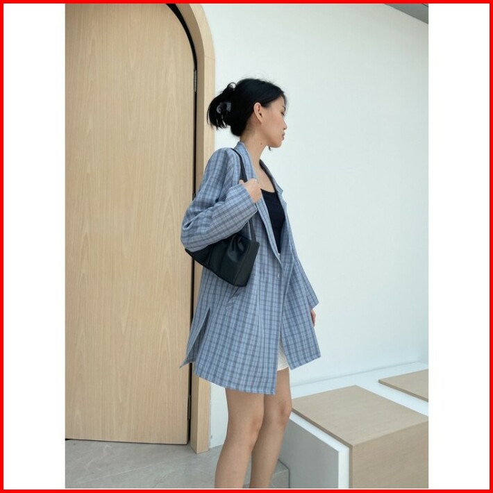 O-0181 Blazer Wanita Outer Oversized Plaid Kotak