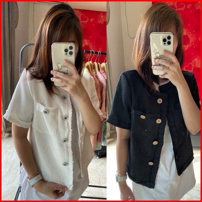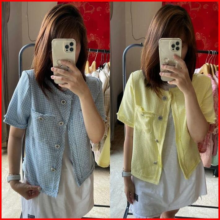 Ready Stock Ld 96 Elena Tweed Top Blazer Pendek Korean Style Premium Fairlady Id