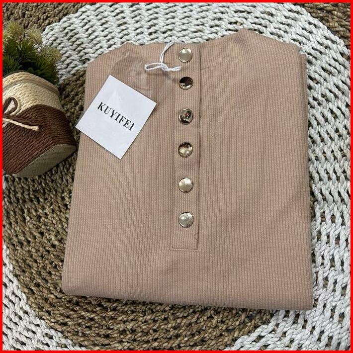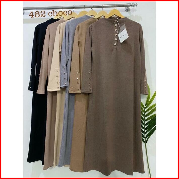 Midi Dress Knit Innara Kuyifei Premium 482 Busui Friendly Ada Aplikasi Kancing Di Tangan